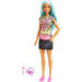 Makeup Artist Barbie doll is ready to give clients a new look with a print-on styling apron and makeover accessories. Wearing a fab look of her own, including wonder blue hair, a colorful leopard print top and pink platform shoes, Barbie makeup artist doll inspires kids ages 3 years old and up to explore their dreams. Doll cannot stand alone. Colors and decorations may vary.