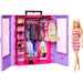 The Barbie Ultimate Closet is not only designed for portability with a carrying handle, but it also features Barbie doll plus clothing and accessories for unlimited styling possibilities! Decorated with Barbie signature style, the purple closet with pink interior features clear doors for a peek into her wardrobe. Barbie doll wears a striped dress plus shoes and comes with trendy mix and match clothing and accessories. Two dresses are perfect for day or night with modern prints and popular colors along with two pairs of shoes, two necklaces and two purses. A fold-out rack is used to hang clothes and is handy for dress-up style changes. Also includes six hangers. The portable closet is ready to travel, anywhere, for any occasion. Doll cannot stand alone. Colors and decorations may vary. For ages 3 to 8 years old.