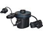 Quickly inflates and deflates almost all inflatable products, Designed to provide maximum airflow, 3 valve adaptors to fit nearly every inflation valve, Large air chamber for rapid inflation, Max Air flow: 680 L/min; 110-120V 60Hz,0.95A; Max Pressure: 390 mmH2O (0.55 PSI / 0.038 BAR)