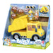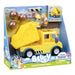 Go on an adventure with Bluey and Bingo to get some work done with Bluey's Dump Truck! Bluey has her hard-hat on and Bingo has been having some fun in the mud. These exclusive figures are the perfect size for pre-school hands to play with, and are articulated so they can sit in the cabin of the Dump Truck! Help Bluey and Bingo load and unload 3 big rocks by moving the lever on the side of the truck to make the built-in bed tilt up and down. Put out the included safety signs so they can get the job done! Kids can even customize the Dump Truck with the included sticker sheet. Toddlers will love to recreate some of the most memorable moments from the show with these fun toys!