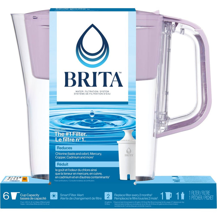 Drink cleaner*, great tasting tap water with this Brita 6-cup Denali water pitcher, made without BPA, and the included Brita Standard filter. Brita Standard filters improve the taste and odor of chlorine to deliver great tasting water, and are certified to reduce copper, cadmium, and mercury impurities*. The Brita Denali water pitcher’s flip lid makes refilling a breeze, while the SmartLight™ indicator lets you know when it’s time to change the filter. Standard Filters should be changed every 40 gallons or about 2 months for best results**. One Brita Standard Filter is included, and this water pitcher is also compatible with Brita Elite™ Replacement Filters. The Brita Denali Pitcher in Misty Lilac is a Target exclusive. * vs. tap water. See certifications. Based on health contaminant reduction per WQA certifications. Substances reduced may not be in all users’ water. Performance Data Sheet available**Approximate timing based on 40-gallon filter life and average family usage of 11 glasses per