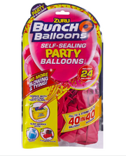 Save time and your breath with ZURU Bunch O Balloons Self-Sealing Party Balloons! Fill, tie and string up to 40 party balloons in just 40 seconds! There's no more blowing, no more tying and no need to add ribbon or string! Each Refill pack includes 24 party balloons and our handy helium adaptor which allows you to take your balloons to the next level by filling with helium! So join the party and choose Bunch O Balloons Self-Sealing Party Balloons, the brand that lets you Prep Less, Party More!