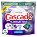 Cascade Platinum Plus ActionPacs dishwasher detergent gives your dishes a breakthrough, cabinet ready clean. Loaded with 2X* the Dawn grease fighting power, and 2X* the food scrubbing power, it has soaking, scrubbing, and rinsing built right in. You can skip the pre-rinse, skip the soak, skip the scrub, and dare to dish differently. Just scrape your dishes and load them into your dishwasher with Platinum Plus to get a superior, sparkling clean, saving you time, effort, and energy vs handwashing. Get virtually spotfree gleaming glassware, dazzling dishes, and pristine pots and pans with Cascade Platinum Plus dishwashing ActionPacs. *Cleaning ingredients vs. Cascade Complete ActionPacs.