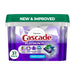 New and Improved Cascade Platinum Plus ActionPacs dishwasher detergent gives your dishes a breakthrough clean with up to 100% food residue removal. Loaded with 2X* the Dawn grease fighting power, and 2X* the tough food scrubbers, it has soaking, scrubbing, and rinsing built right in. You can skip the pre-rinse, skip the soak, skip the scrub, and dare to dish differently. Just scrape your dishes and load them into your dishwasher with Platinum Plus to get a superior, sparkling clean, saving you time, effort, and energy vs handwashing. Cascade Platinum Plus removes visible and invisible residue for gleaming glassware, dazzling dishes, and pristine pots and pans. *Cleaning ingredients vs. Cascade Complete ActionPacs.