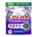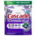 New and Improved Cascade Platinum Plus ActionPacs dishwasher detergent gives your dishes a breakthrough clean with up to 100% food residue removal. Loaded with 2X* the Dawn grease fighting power, and 2X* the tough food scrubbers, it has soaking, scrubbing, and rinsing built right in. You can skip the pre-rinse, skip the soak, skip the scrub, and dare to dish differently. Just scrape your dishes and load them into your dishwasher with Platinum Plus to get a superior, sparkling clean, saving you time, effort, and energy vs handwashing. Cascade Platinum Plus removes visible and invisible residue for gleaming glassware, dazzling dishes, and pristine pots and pans. *Cleaning ingredients vs. Cascade Complete ActionPacs.