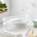Bring order to closets, study tables, and craft rooms with this 3 Quart Shallow Slim Bin from Brightroom™. Featuring a stackable design for compact spaces, this transparent shallow bin lets you easily see what you've stored inside. Designed in a slim shape, this storage box comes with two side integrated handles for easy carrying around, and it has a capacity of 3 quarts for ample storage.