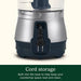 Save countertop space and simplify food prep with this multifunctional food processor that combines compact size and big performance. Power through a wide variety of food processor tasks, from chopping meats and vegetables for hearty stews to puréeing avocados for creamy guacamole. This 5-cup food processor for quick meal prep features a universal chopping blade and a reversible shredding disc to make prepping dishes, desserts, and drinks easy. Simple paddle controls put On and Off/Pulse at your fingertips, and the wide-mouth feed tube holds plenty of fruit and vegetables. To simplify storage, removable parts nest in the work bowl, and the cord goes in the back of the base.