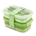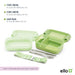 The Ello Stackable Bento Lunch Container is designed to keep food separate and is easy to fit in your work or school bag. This stack consists of a 2 cup container and a 3 cup container with a removable divider, along with a stainless steel fork and knife for convenience. Each container includes a locking lid so you can choose to use them together or separate. The machine-washable strap keeps the two containers together for easy transport, and the utensils fit snugly inside the strap. Do not use the product to cook or boil. Excessive reheating time in the microwave may damage the container. Sterilization and exposure to high temperatures can lead to microplastic release in all plastic food storage.
