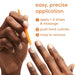apply 1-2 drops to line cuticle area. let sit for 15 seconds. massage and buff nails and skin around nails using finger before gently pushing back cuticles with cuticle pusher. rinse with warm, soapy water.