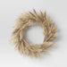 Celebrate the autumn season by decorating your home with this Fall Wheat Wreath from Threshold™. This circular wreath is covered with a faux foliage of dried wheat for a neutral, natural-themed look. This ready-to-use wreath is designed for indoor use, and you can hang it on any wall or door with the help of the back hanging loop.