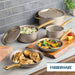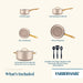 These statement-making pots and pans radiate style, with a contemporary champagne-colored surface inside and out, color-matched lids, and sleek gold-colored stainless steel handles that are the ultimate on-trend accents. Beyond good looks, this cookware delivers superior performance for everyday reliability, supported by more than 120 years of Farberware’s trusted quality. Features include a durable nonstick cooking surface for super smooth food release and easy cleaning; aluminum construction for fast, even heat distribution, and flared rims on saucepans and Dutch oven for mess-free pouring. They’re also dishwasher safe and oven safe to 350 degrees F, and the set includes four essential cooking tools from Prestige. Elevated designs, everyday performance, trusted quality.