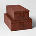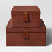 Keep any space in your home organized with the Faux Leather Storage Box Set from Threshold™. This set of two storage boxes is designed in a rectangular shape with a lid to help keep the contents nicely covered. Made of faux leather, this brown storage box set is a functional addition to your home. You can keep it on your desk, accent table, or any other area for stylish organization.