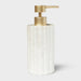Set up an elegant and beautiful bath space with the Fluted Capiz Soap Pump from Threshold™. This soap pump features a fluted design for a delightful appeal that complements your bathroom decor well. Made of resin with a gold-tone lid for a contrasting look, this soap pump is compatible with lotion.