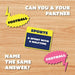 Challenge your quick-thinking skills with Gamewright's Think 'N Sync, the party game where great minds think alike! Players pair up and attempt to shout out the same answer to a given prompt simultaneously. Can you both name a movie princess? An ice cream flavor? Something orange? The catch? Your answers only score if they're identical. With 225 category cards and 8 scoring tokens, this game is perfect for 3 to 8 players aged 12 and up. Whether it's a family game night or a gathering with friends, Think 'N Sync promises laughter and lively debates as players strive to be on the same wavelength.