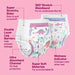 Features: Leak Guards, Wetness Indicator, Tear Away Sides, Latex-Free, SnugFit Waistband, Elastic Stretch Sides, Absorption Channels, Pull-On Design