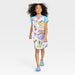 Make bedtime more fun for your child with the Rugrats Nightgown with Slippers. This short-sleeve nightgown features an illustration of Chuckie, Angelica and more characters from the show on the white backdrop at front, while the back features solid blue color. The included blue slippers feature Angelica on one and Reptar on the other for added style. Designed with a crew neckline, this jersey nightgown with slippers helps keep them comfortable all through the night.