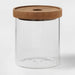Preserve your cooking and baking supplies in a beautiful, modern styled Small Glass Storage Canister with Wood Lid from Threshold. No need to worry about your tea, herbs or other ingredients going bad when you've got this holder, and you can always see when you're about to run out thanks to the clear glass construction. Its stained wood lid also gives the storage canister a natural, modern aesthetic that you can effortlessly integrate into your kitchen decor.