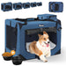 ?2 Foldable Bowls & A Washable Pad?This soft dog crate comes with two foldable bowls that can be stored inside the dog crate when not in use. The bowls are sturdy and leak-proof, making it perfect for water or food.A soft warm pet pad in our dog kennel that your dog will love to snuggle up in. The pad is machine washable for easy cleaning., ?2 Storage Pockets & 2 Portable Handles?The soft sided dog crate has side and top pockets to store essentials such as snacks and toys. The collapsible dog crate is easy to carry with the side handles, making it perfect for travel, transportation and daily walks., ?Spacious & Well-Ventilated?Our large dog carrier features five mesh sides for optimal fresh air flow. The spacious dog crate creates a stress-free environment for your pet indoors and allows him to connect with nature and feel the gentle breeze outdoors. In addition, the dog kennel's four doors allow your dog to move freely, ensuring his well-being., ?Easy Assembly & Collapsible?This travel dog crate can be effortlessly assembled in 2 minutes, ensuring a stress-free experience for both you and your furry friend. When not in use, its collapsible design allows for compact storage, making it convenient to stow away under a seat or in any other confined space. Elevate your pet travel experience with this innovative and space-saving solution!, ?Sturdy & Safe?Our travel dog crate features durable 600D Oxford fabric and sturdy internal stainless steel tubes. Our large dog carriers are equipped with lockable zippers to effectively prevent accidental opening. Reinforced stitching enhances overall reliability, ensuring a tough and safe environment for your cherished furry companion., ?Kindly Note? Please measure the dimensions of your pet's body before purchasing a dog crate, such as the standing height (head to floor) and length (tip of nose to root of tail).Opt for a folding dog crate that aligns with these measurements to ensure the perfect fit and provide your pet with an ideal and comfortable living space.