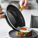 This 12-inch GreenPan Studio Frypan is as functional as it is gorgeous. For example: The stunning gold-tone handle has a corrosion-resistant finish. The sleek, ceramic nonstick coating also boasts diamond-enhanced layers for added durability. The heavy-gauge aluminum body delivers excellent heat conduction, the 360-degree edge is specially designed for mess-free pouring, and the lid is made of tempered glass to allow for easy viewing. As with all of our cookware, this frypan is free of PFAS, PFOA, lead, and cadmium. Whether you're making eggs for a crowd, sautéing a bounty of vegetables, or searing giant pork chops, this stunner has you covered.
