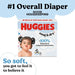 Our Snug & Dry diapers are designed with 2x softness: CloudSoft absorbent layers and waistband and a curved and stretchy fit. Softer than the leading premium diaper, more parents choose Huggies Snug & Dry baby diapers as softer.* With Snug & Dry baby diapers, you can bring up to 100% leak and blowout protection to your diapering routine. Made with the original Leak Lock blowout blocker, Snug & Dry baby diapers help provide up to 100% leak proof and blowout protection. Additionally, these diapers are designed with a curved and stretchy fit and outstanding leakage protection. As the only leading brand that is entirely fragrance free,* Snug & Dry diapers size 4 are free of fragrances and elemental chlorine. They are also made without lotions and natural rubber latex. To better alert you when a diaper change is needed, the wetness indicator on Snug & Dry disposable diapers changes color when wet. Available in exclusive Disney designs, Huggies Snug & Dry Diapers are available in size Newborn (6-9 lb.), size 1 (8-14 lb.), size 2 (12-18 lb.), size 3 (16-28 lb.), size 4 (22-37 lb.), size 5 (27+ lb.), size 6 (35+ lb.), size 7 (41+ lb.) and size 8 (46+ lb.). (*vs leading premium diaper) (**among leading national diaper brands, across all offered variants) (***among branded open diapers. Excludes preemie size.)