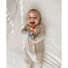 Chew on this! Soft silicone teething chew tube is perfect for front, side, and back teething. Pop it in your bag for easy, fun, and safe relief while on-the-go. Easy to grasp cross-bar works with baby’s natural grip reflex also making it easy for baby to hold. Multi textures help to soothe sore gums. Ages 3M+