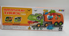 Generous Storage Space: Our dinosaur truck doubles as a storage unit, capable of comfortably housing all six mini dinosaur cars across two decks. No more misplaced Dinosaur cars, making pack away time effortless., Slide and Go Fun: The top deck of this kids' truck adjusts to form a sliding ramp when connected to the back door skid, allowing the mini dinosaur cars to swoosh down and zoom away. It adds an extra element of fun to Play period!, Engaging Interactive Features: The truck head is packed with features! It's equipped with electronic parts and buttons that simulate engine start, siren, dinosaur-themed music & sounds, along with two LED lights for visual stimulation. The driver cabin top and front grill boast a flip-over design with an inner slide channel allowing cars to slide out from the top and front grill, enhancing the play value., Bath Time Companion: The mini dinosaur cars are designed with high-quality, water-resistant rubber material. Ensuring they can join your toddler's bath time for some splashy fun!, Learning Through Play: This dinosaur truck toy set encourages children to learn and play, simulating dinosaur-themed cars. It comes equipped with music and sound, lights to better cater to their growing needs such as crawling and chasing, and helps develop essential skills.