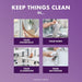 Kills Influenza A Virus (H1 N1 ), Respiratory Syncytial Virus (RSV), and SARS-CoV-2 on hard, non-porous surfaces in 2 minutes. Kills Salmonella enterica (Salmonella), Escherichia coli O157:H7 (E.coli), Herpes Simplex Virus Type 1, Respiratory Syncytial Virus (RSV), Staphylococcus aureus (Staph), and Streptococcus pyogenes (Strep) on hard, nonporous surfaces in 4 minutes. This product removes the following allergens: dust mite debris, pet dander and pollen particles from timothy grass. EPA #777-114.