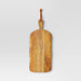 Serve food items to family and friends in sleek style with this Mango Wood Rectangle Serving Tray with leather Knotted Loop from Threshold™. The rectangular serving tray is perfect for serving various cheeses, chopped fruit, cupcakes or other goodies, while the natural finish pairs easily with any table decor. Plus, the leather knotted loop makes for easy hanging.