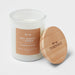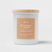 Light up your space with the Milky White Glass Red Mango and Amber Lidded Wooden Wick Jar Candle from Threshold. Infused with the pleasant scent of amber and mango, escape to your happy place. A blend of soy and paraffin wax, this candle comes in a glass container with a decorative wooden lid.