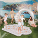 The MINNIDIP Luxe Inflatable Garland Arch Sprinkler is the first-ever inflatable arch sprinkler featuring the first-of-its-kind, one-step, inflatable, reusable, detachable balloon garland for a showstopping centerpiece for a day of splashing, photo snapping or party throwing! MInnidip's first-of-its-kind garland innovation offers effortless one-step set-up featuring connected beach balls with a single inflation point—allowing for an iconic balloon garland look in just one simple step! Hooks on both the garland and arch allow for use together or separately. Additionally, the Garland Arch can be used without the sprinkler for indoor or outdoor decoration—perfect for party and photo backdrops!