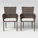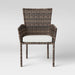 Round out your al fresco seating arrangement in breezy style with this 2-Piece Monroe Patio Dining Chair Set from Threshold™. These patio chairs features a weather-resistant sturdy steel frame covered with a woven back and armrests for a breezy look that’s tough enough to stand up to rainy days and sunny days alike. Plus, the foam-filled cushions and raised arms offer comfort whether you're seated for a family dinner, Sunday brunch or simply conversation and cocktails with guests. Have a seat and relax outside with family and friends on these upholstered dining chairs.