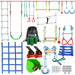 Included Components: 50FT Slacklines X 2 + 5.9FT Ratchets X 2, Swing X 1 + Trapeze Swing X 1 + Rope Ladder X 1 + Climbing Net X 1 + Monkey Fists X 2 + Monkey Rings X 2 + Monkey Bars X 2 + 1.2M Arm Trainer X 1, 3.3FT Tree Protectors X 4 + Webbing Buckles X17 + Connecting Buckles X 17 + Carrying Bag X 1, Visual Instruction User Manual X 1