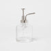 Give your bath space a quick update with this Oil Can Soap Pump from Threshold. Crafted from clear solid glass, this round soap dispenser displays a smooth, gleaming body for easy viewing, and the easy-to-use metal pump comes with a curved spout that gives you just the right amount of liquid every time. This versatile glass soap dispenser blends easily with any existing decor and can dress up any corner of your home, from kitchen to bathroom counters or even your vanity. Pair with coordinating glass accessories for a modern, minimalist vibe in your space.