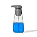 The OXO Soap Dispenser features a wide base and large top surface for easy, one-handed use. The 15 ounce capacity is ideal for keeping soap, lotion or sanitizer close at hand, and the nozzle is designed to minimize dripping and clogging. The clear body shows when it’s time to refill, while the top-view MAX fill line helps prevent overfilling. Simply quarter-turn the contoured head to remove and refill.