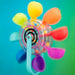 A unique bath toy, powered by water, for bath time fun! Stick the whirling waterfall to the bottom or side of the tub and pour water over the cups to see the wheel spin. Simply spin the wheel to watch the rainbow of colored cups come to life. As it spins, beads rattle inside to stimulate hearing. Inspire all the baby's senses with this one of a kind bath toy!