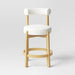 Bring a touch of comfortable style to your eat-in kitchen or bar area with this Sculptural Upholstered Wooden Counter-Height Barstool from Threshold™. Supported on a wooden frame, this counter-height bar stool features a round upholstered seat with an open raised backrest with upholstery for comfort. Best of all, a built-in footrest lets you rest your feet comfortably while enjoying your meals or drinks. Showcasing a stained wooden finish with cream upholstery, it features sculptural accents for a touch of style.