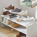 Add a space-saving solution to organizing your shoe collection with the Wire Shoe Space-Saving Slot Organizers from Brightroom™. This pack of six shoe organizers features a wired design to bring a sleek style to your space. Made of metal, this white shoe organizer set is ground freestanding.