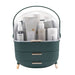 Keep your makeup organized, dry and dust free. This organizer has a flip-down clear lid to keep your products safe and secure. The top section is large enought for full sized product. 2 drawers are perfect for cosmetics, brushes and beauty tools.