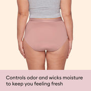 From the creators of Thinx, Thinx For All Leaks is bladder leak protection that can keep up with you. Thinx For All Leaks reusable underwear is a sustainable and comfortable alternative to single-use disposables for pregnancy, postpartum and adult incontinence. Our incontinence underwear feels just like your everyday underwear and is designed with built-in leak protection that keeps you fresh, dry and comfy — no pads, liners or other disposable bladder leak products needed. Thinx For All Leaks women's incontinence underwear has an ultra-absorbent core layer that absorbs up to 100 mL (about 6 tablespoons) worth of leaks, while the moisture-wicking top layer draws away wetness and dries fast. Our underwear feature odor-controlling technology that traps and neutralizes unwanted odors so you can feel fresh and worry-free. From the period care experts at Thinx, Thinx For All Leaks is the entry point for an easier daily routine — a total replacement for single-use bladder leakage products — and will change the way you think about incontinence care. Thinx For All Leaks is machine-washable and reusable, so you can have peace of mind cycle after cycle. Simply machine wash cold your Thinx incontinence underwear and tumble dry low!